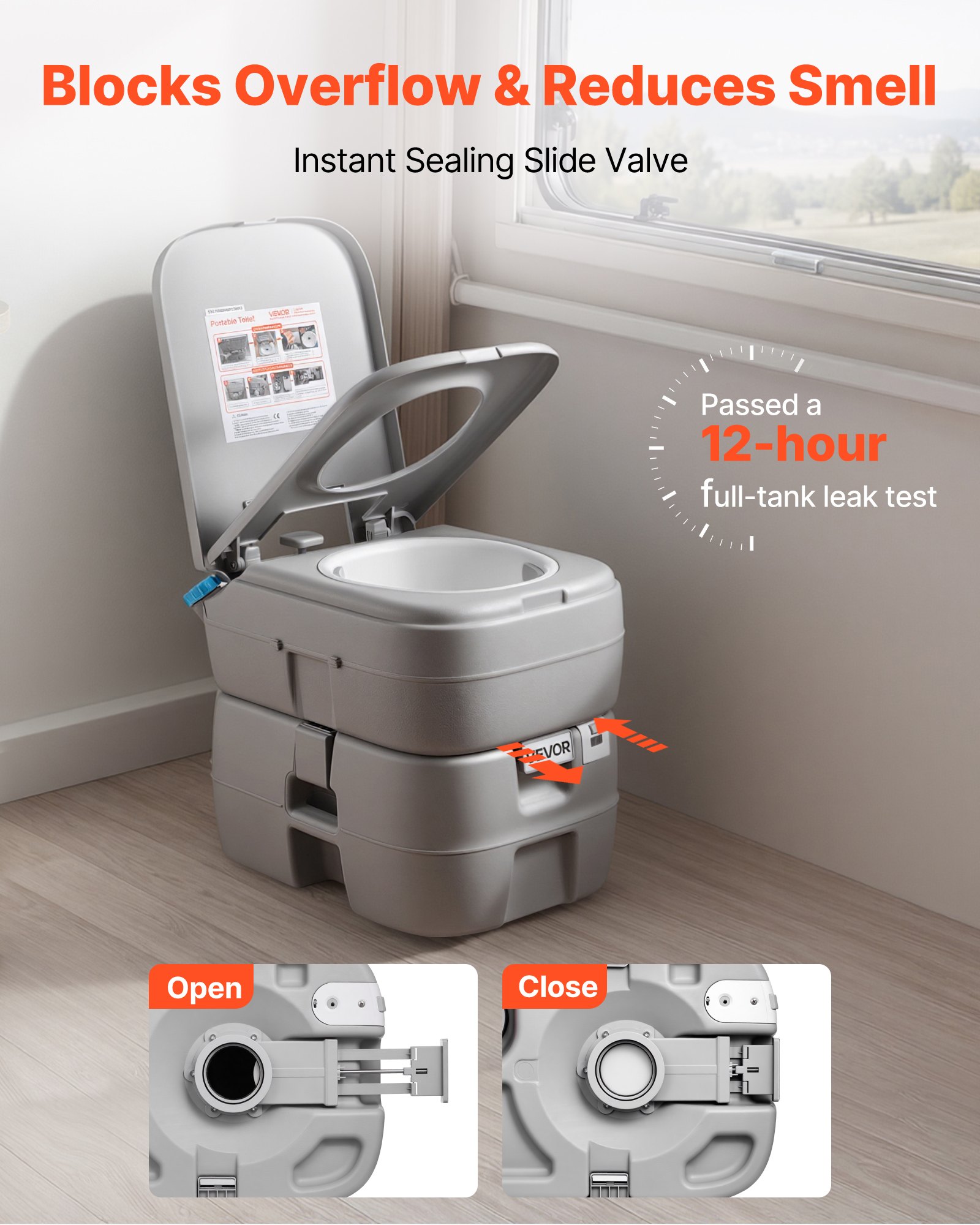 If you want a real flush-style portable toilet (instead of a bucket or bag setup), this VEVOR model focuses on capacity and convenience: a large waste tank, a separate flush tank with manual pumping, and a sealed slide valve for transport. The key practical checks are where you’ll dump legally, how often you’ll empty, and whether the size fits your storage space.